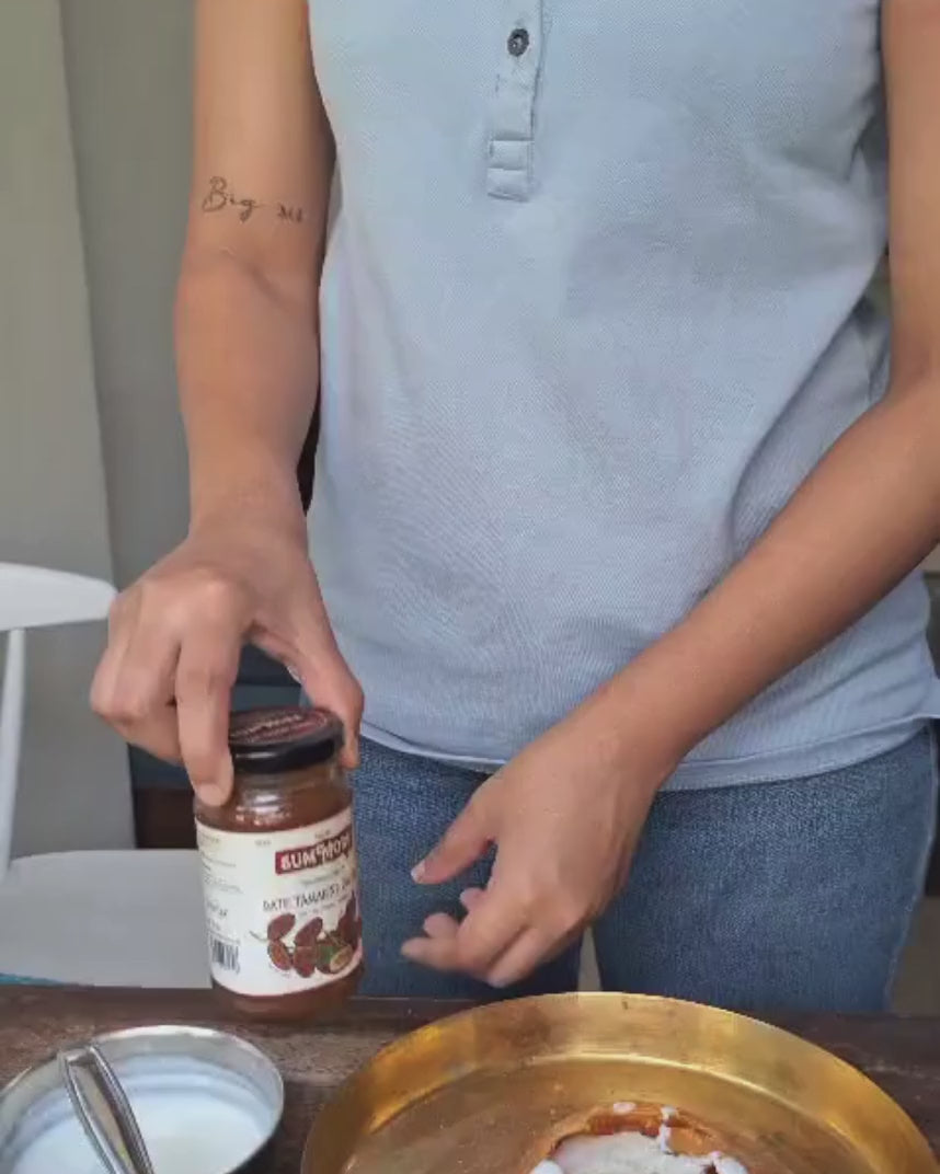 The classic sweet sour chutney that finds a place in all our pantries. Our Date Tamarind Chutney is made with the goodness of tamarind, dates and jaggery powder, to make the perfect sweet sour chutney for your chaat party. Also use it as a replacement for tamarind paste in any Thai cuisine recipes.
