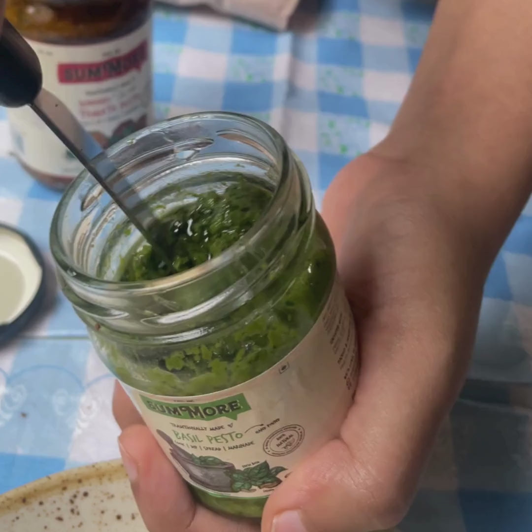 Introducing our freshly handpounded Basil Pesto, made in the traditional Genovese style. We take pride in sourcing the freshest basil leaves from local farms to ensure the highest quality pesto. Our recipe includes a perfect balance of parmesan and cashewnuts, resulting in a rich and creamy texture with a nutty flavor that pairs perfectly with pasta, sandwiches, or as a dip. Each batch is carefully crafted by hand to ensure the flavors are perfectly balanced and the texture is just right. Elevate your dishes with the true Italian taste of our Basil Pesto.